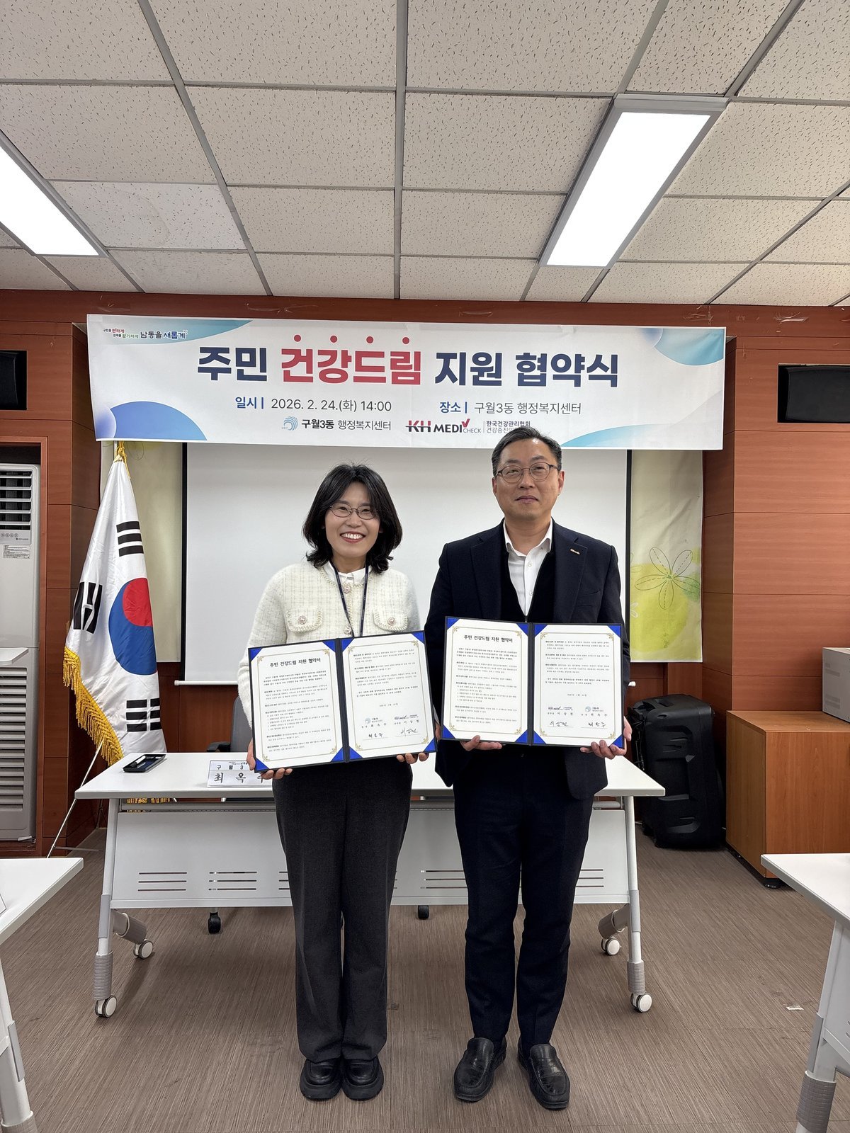 [금요저널] 인천시 남동구 구월3동 행정복지센터는 한국건강관리협회 인천광역시지부와 ‘주민 건강드림 지원 협약’을 체결했다고 25일 밝혔다.