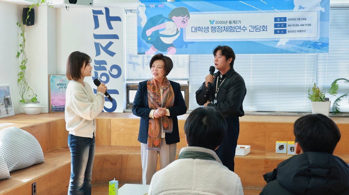 [금요저널] 과천시는 25일 청년공간 비행지구에서 '2026년도 동계 대학생 행정체험연수'2기 참여자 58명을 대상으로 간담회를 개최했다.