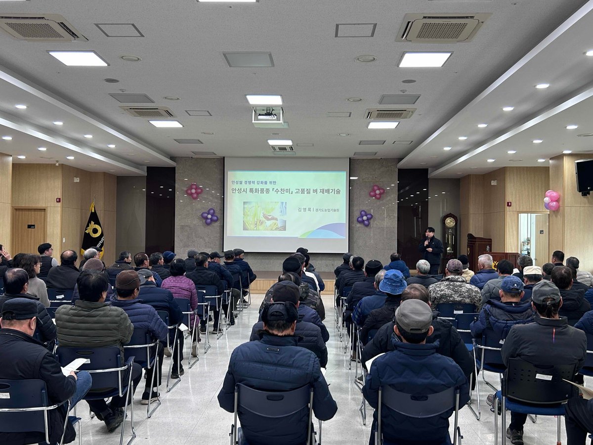 [금요저널] 안성시농업기술센터 남부농업기술상담소는 지난 24일 미양농협 2층 교육장에서 안성시 지역 특화 품종인 ‘수찬미’의 재배 안정성과 품질 고급화를 위한 재배기술 교육을 개최했다.