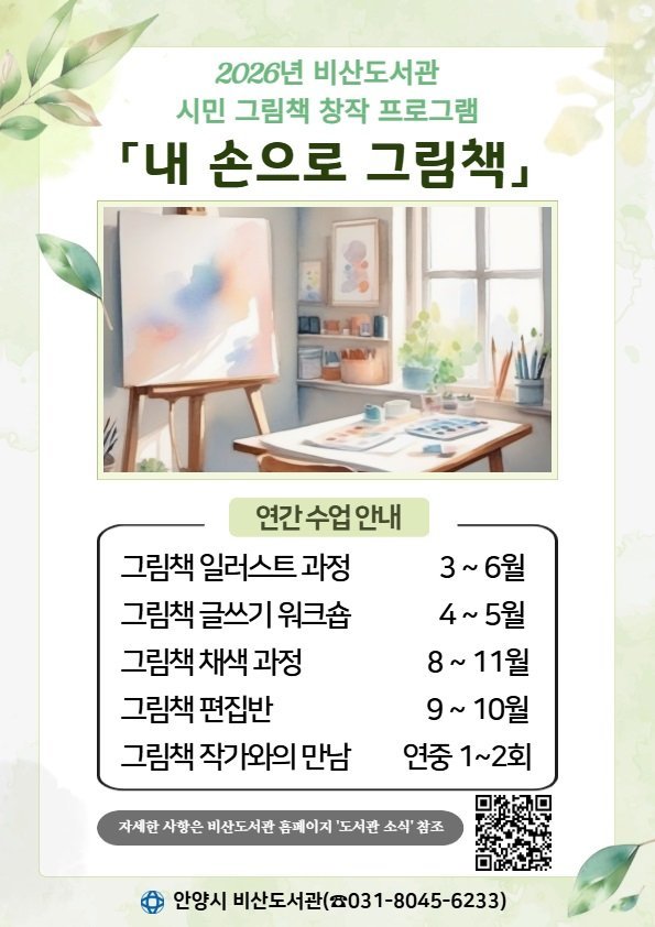 '내 손으로 그림책'프로그램은 참여자들이 직접 그림책을 만들 수 있도록 지원하는 사업으로 3월부터 연중 진행되며 어린이부터 성인까지 전 연령의 안양시민이 참여할 수 있다.
