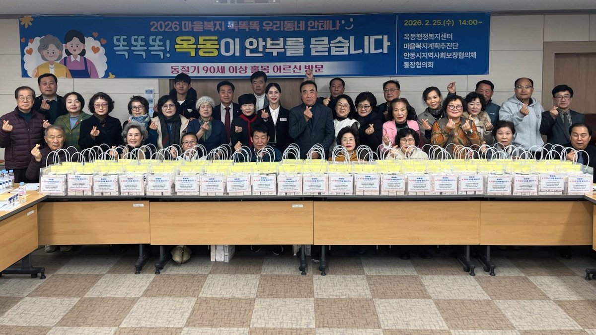 [금요저널] 안동시 옥동행정복지센터와 옥동마을복지계획추진단는 25일 관내 90세 이상 홀몸 어르신을 대상으로 안부를 확인하고 건강 음료를 전달하는 ‘똑똑똑 옥동이 안부를 묻습니다’사업을 추진했다.