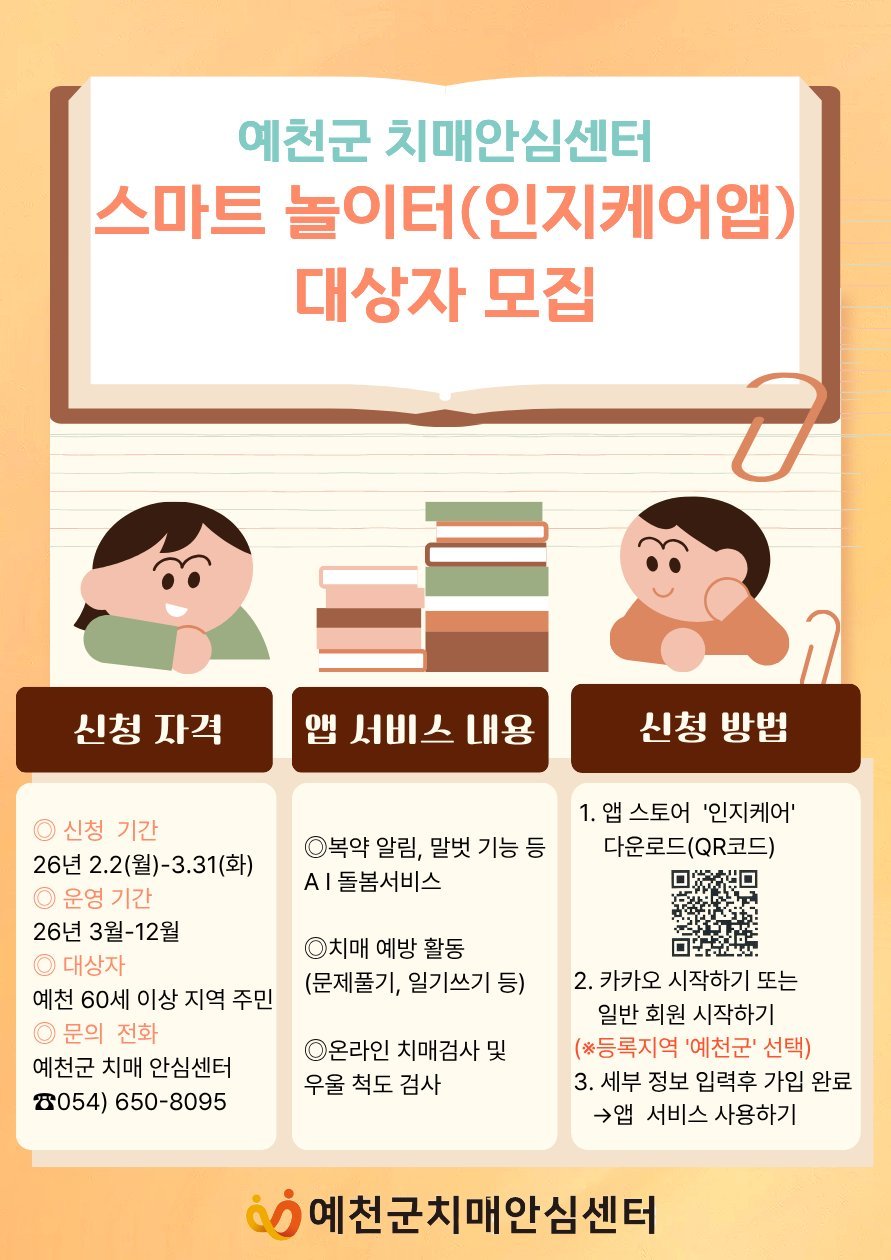 오는 3월부터 12월까지 운영하는 이번 사업은, 디지털 기반 인지훈련 프로그램을 통해 어르신들이 일상에서 쉽고 재미있게 두뇌 건강을 관리할 수 있도록 마련됐다.