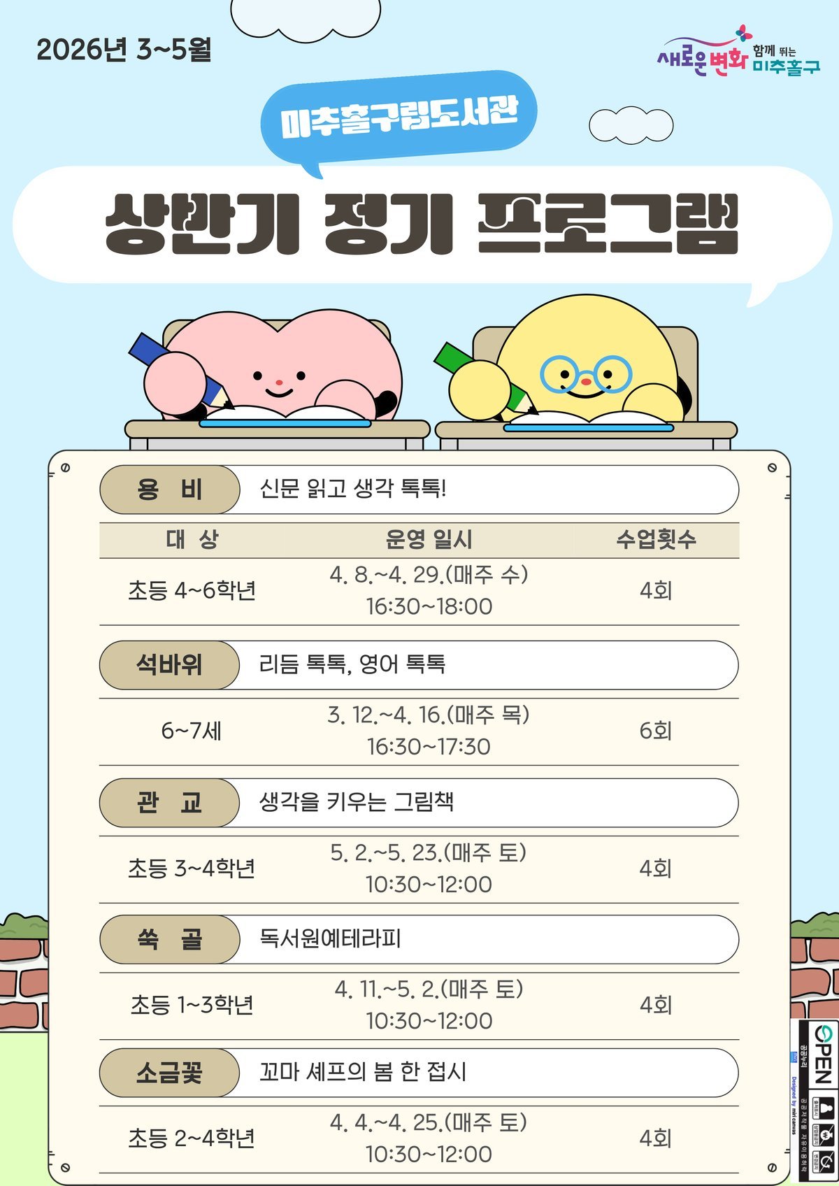 미추홀구립도서관, 상반기 정기 프로그램 수강생 모집. 5개관 참여 (미추홀구 제공)