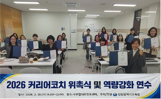 [금요저널] 인천광역시교육청은 25일 서부결대로진로센터에서 진로교육 전문가인 ‘커리어코치’ 20명을 위촉하고 현장 전문성 강화를 위한 역량 강화 연수를 실시했다.