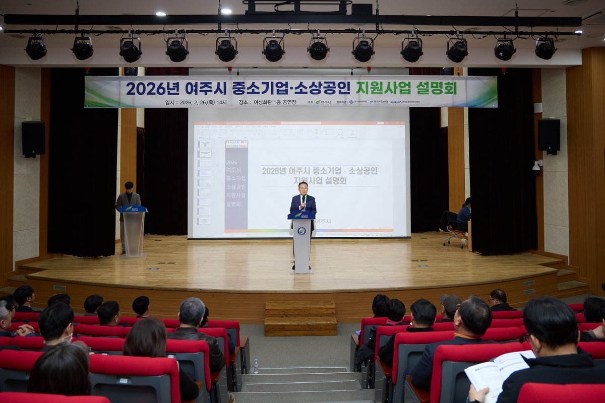 [금요저널] 여주시는 26일 오후 2시 여주시 여성회관 공연장에서 관내 중소기업인과 소상공인 150여명이 참석한 가운데 '2026년 중소기업, 소상공인 지원사업 설명회'를 개최했다.