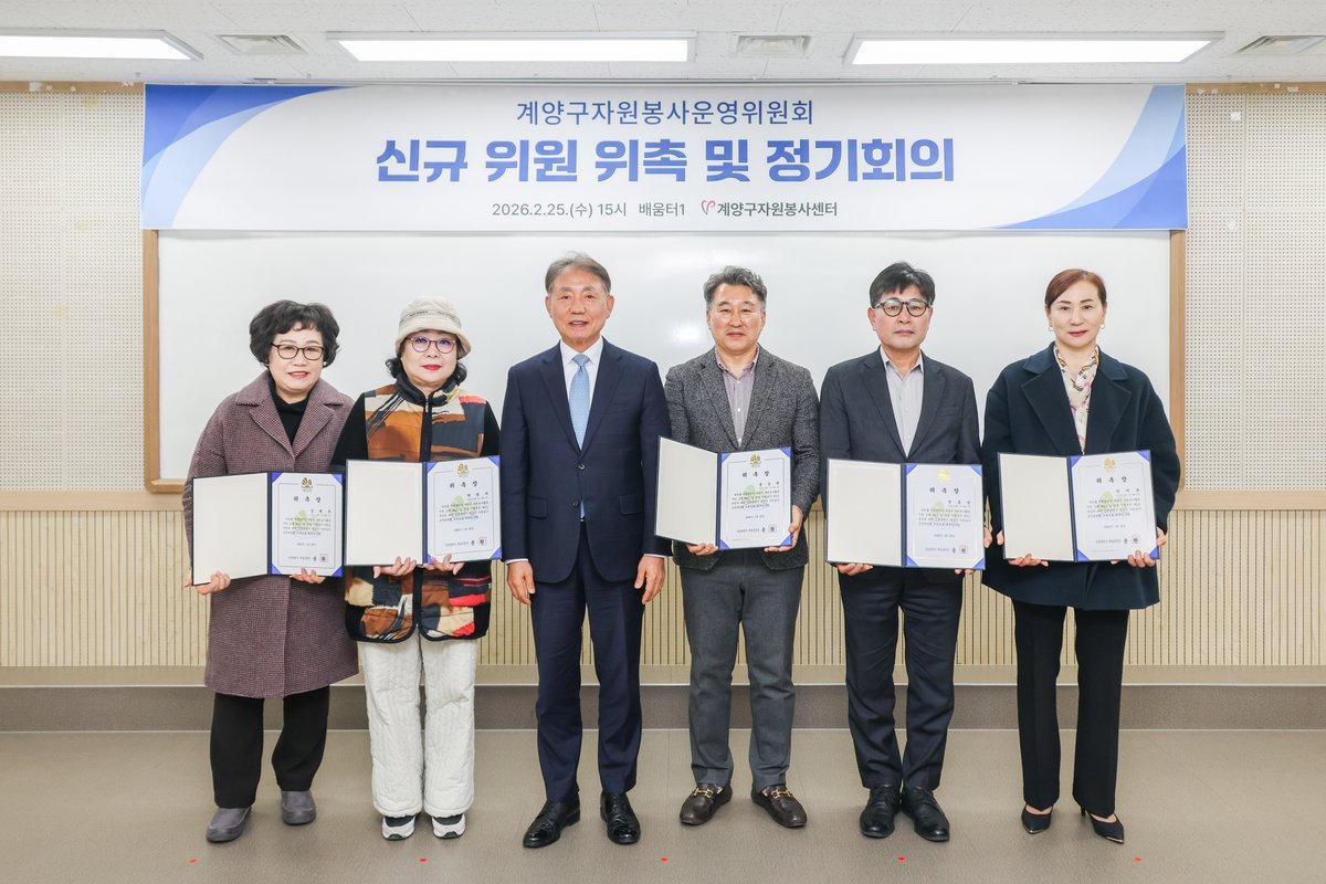 회의에 앞서 신규 위원 위촉식이 진행됐으며 본 회의에서는 2025년도 계양구자원봉사센터 결산 2026년 자원봉사단체 우수사업 지원 심사 계양구자원봉사센터 운영규정 일부개정 규정 등 3건의 안건을 심의해 모두 원안 가결했다.