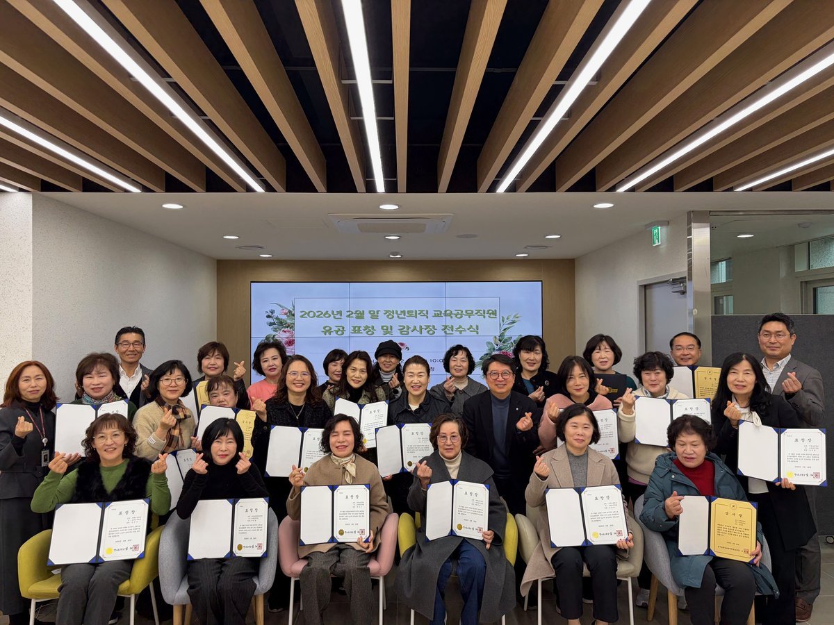 [금요저널] 경기도용인교육지원청은 27일 관내 2026년 2월 말 정년퇴직 교육공무직원을 대상으로 교육감 유공 표창 및 교육장 감사장 전수식을 개최했다.