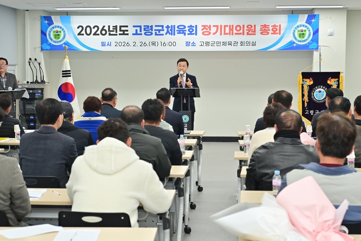 [금요저널] 고령군체육회는 지난 26일 오후 4시 고령군민체육관 1층 회의실에서 이남철 고령군수, 이철호 고령군의회의장 및 군의원, 노성환 경상북도의원, 김종태 고령군체육회장, 체육회 대의원 및 읍, 면체육회장 등 임원 40여명이 참석한 가운데 2026년도 정기대의원총회를 개최했다.