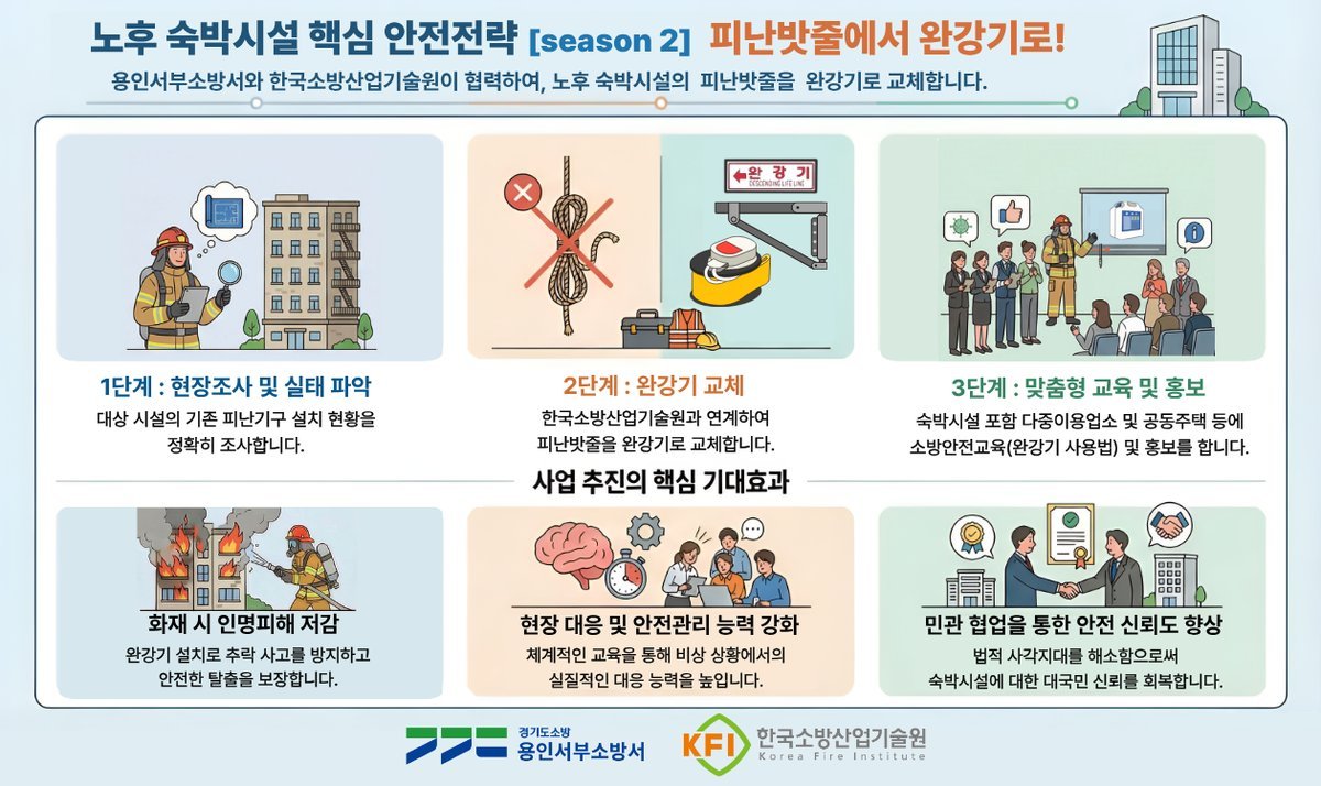 이번 사업은 노후 숙박시설의 피난 안전 수준을 한 단계 끌어올리기 위한 선제적 안전 강화 조치로 완강기 교체와 설치 지원, 교육, 홍보를 병행해 현장 중심의 안전관리 체계를 구축하는 데 의미를 두고 있다.