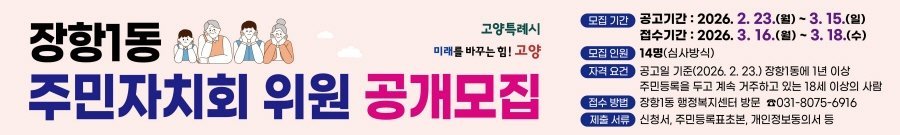 [금요저널] 고양특례시 일산동구 장항1동이 2026년 상반기 주민자치회 위원을 공개 모집한다.