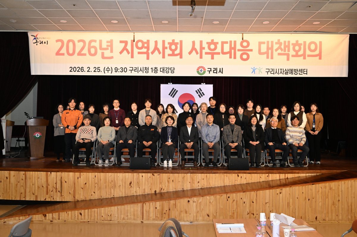 [금요저널] 구리시, 지역사회 자살 예방 대책 회의 개최 22개 기관 참여 지역사회 중심 협력체계 강화 구리시는 2월 25일 구리시청 1층 대강당에서 지역사회 자살 예방 대책 회의를 개최했다.