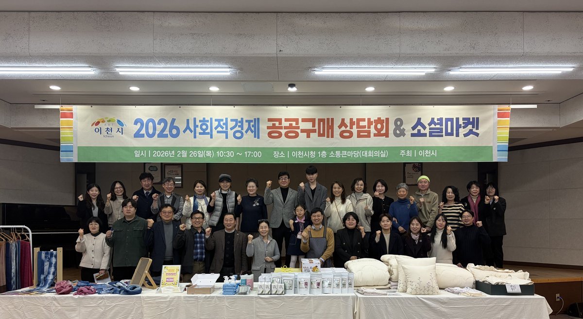 [금요저널] 이천시는 2월 26일 오전 10시 30분부터 오후 5시까지 시청 본청 1층 소통큰마당에서 ‘2026년 이천시 사회적경제 공공구매 상담회 소셜마켓’을 개최하고 성황리에 마무리했다.