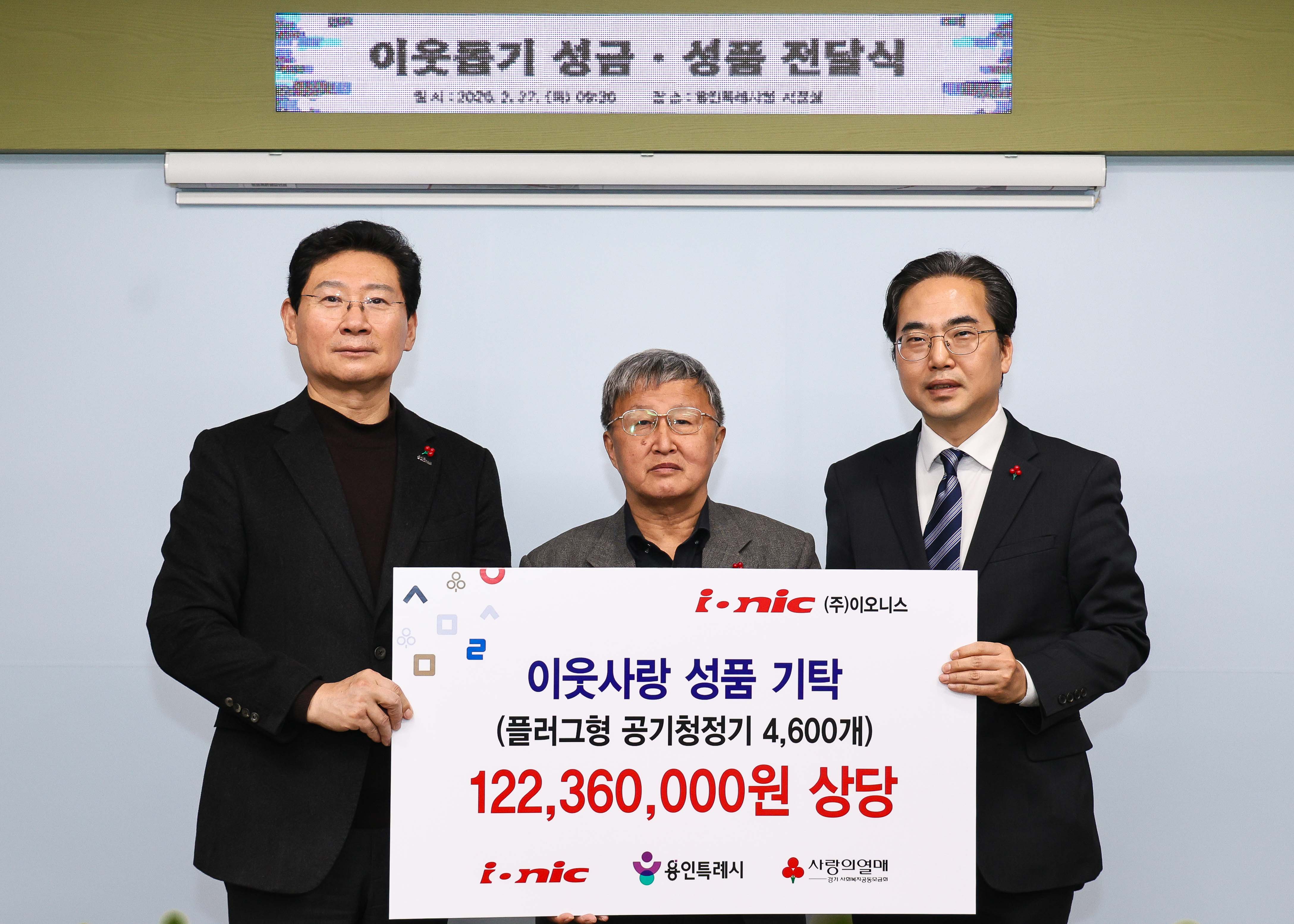 ㈜이오니스는 공기청정기 4600대(1억 2000만 원 상당)를, 브랜드 ‘시원하당’을 보유한 한 업체도 성금 200만 원을 전달하며 나눔에 동참했다.