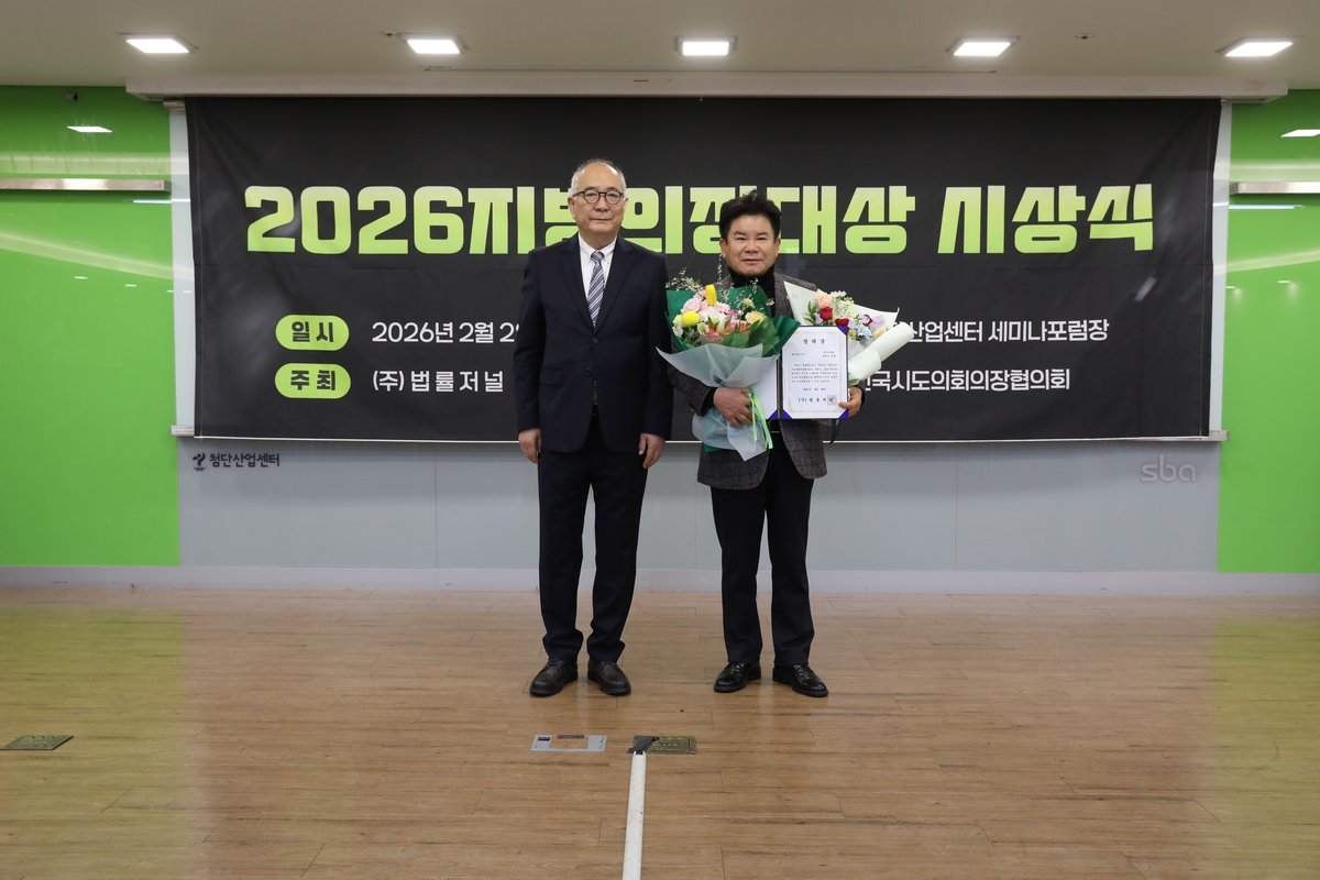 [금요저널] 경기도의회 건설교통위원회 문병근 의원이 법률전문지 법 률저널이 주최하고 대한민국시도의회의장협의회가 후원하는 '2026 지방의정 대상'에서 광역의원 부문 장려상을 수상했다.