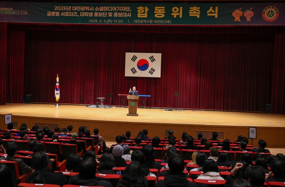 [금요저널] 대전시는 3일 오후 3시 시청 대강당에서 ‘2026년 소셜미디어 기자단, 글로벌 서포터즈, 대학생 홍보단 및 홍보대사 합동 위촉식’을 개최했다.