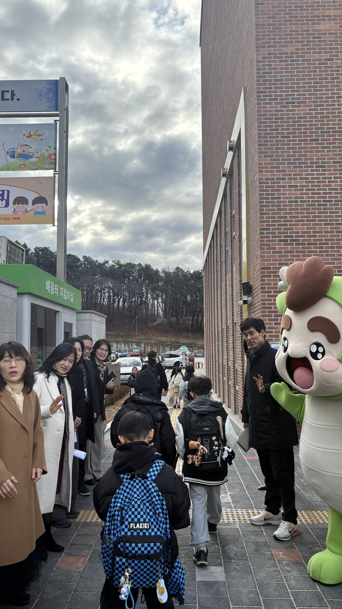 이날 조영민 교육장과 학교장은 용인의 아이를 상징하는 용인교육지원청 캐릭터 '미르아이'와 함께 학생들의 등교를 환영하고 따뜻한 떡을 준비해 학생들의 첫 등교를 위해 힘쓴 신설 학교 교직원을 격려했다.