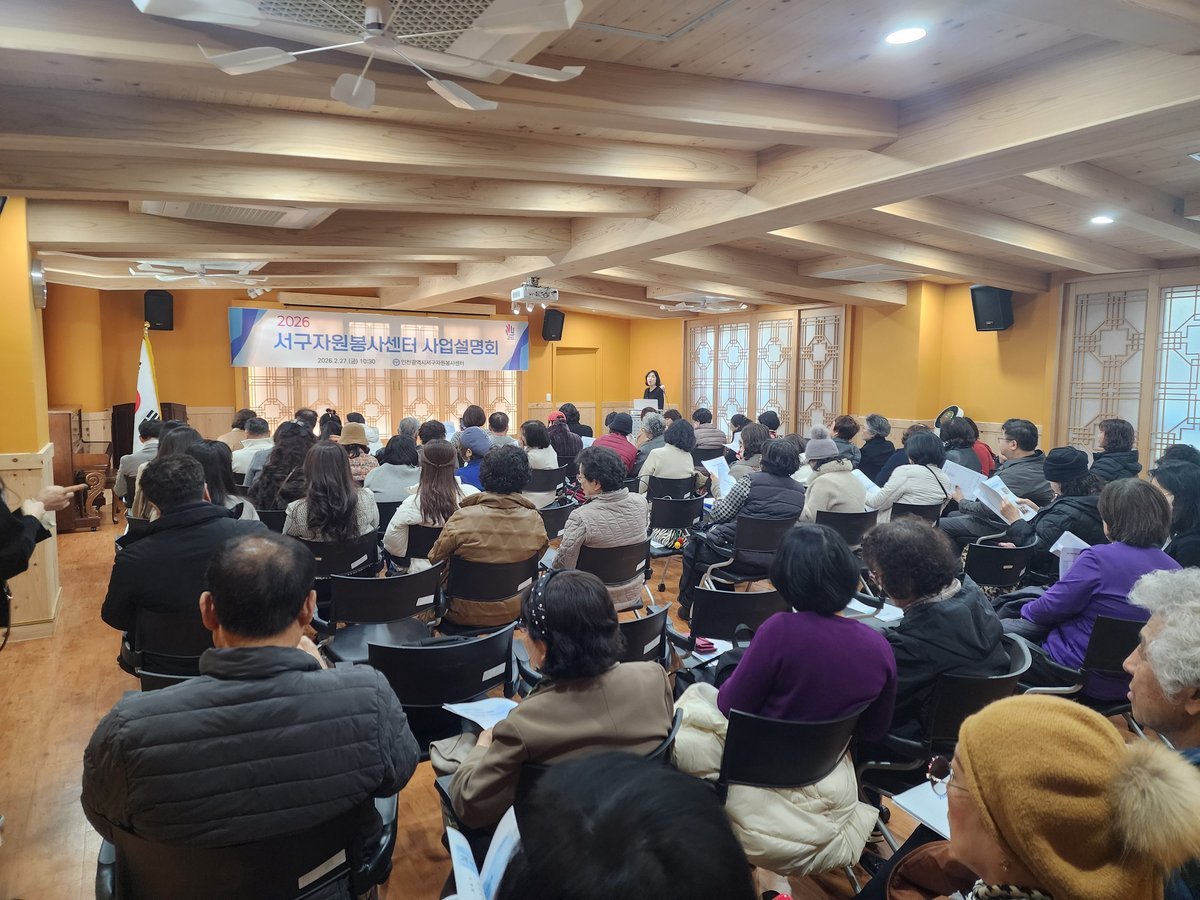 [금요저널] 인천서구자원봉사센터는 지난 2월 27일 센터 2층 강당에서 120여명의 자원봉사단체장 및 자원봉사자들이 참석한 가운데 '2026년 인천서구자원봉사센터 사업설명회'를 개최했다.