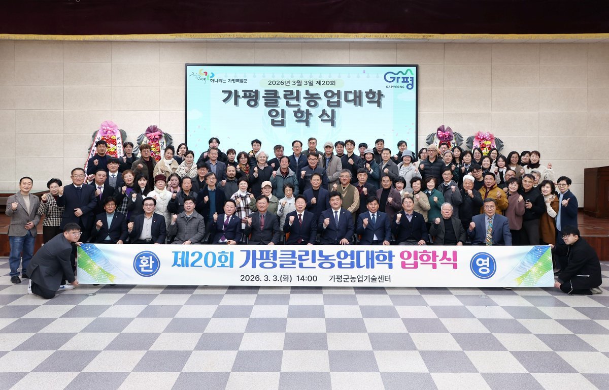 [금요저널] 가평클린농업대학이 3일 농업기술센터 3층 대강당에서 '2026년 제20회 가평클린농업대학 입학식'을 열고 76명의 신입생을 맞았다.
