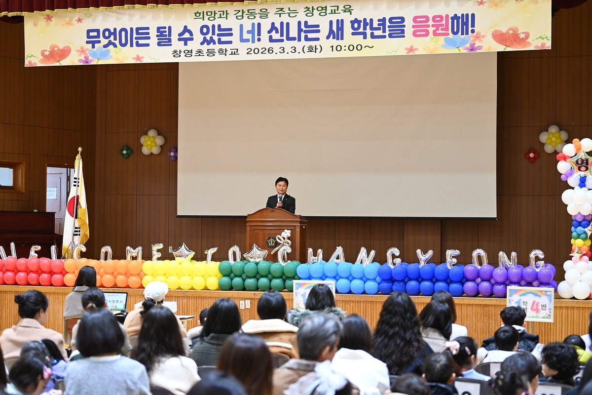 부천시장이 창영초등학교 입학식에서 축하 말씀을 전하고 있다 부천시 제공