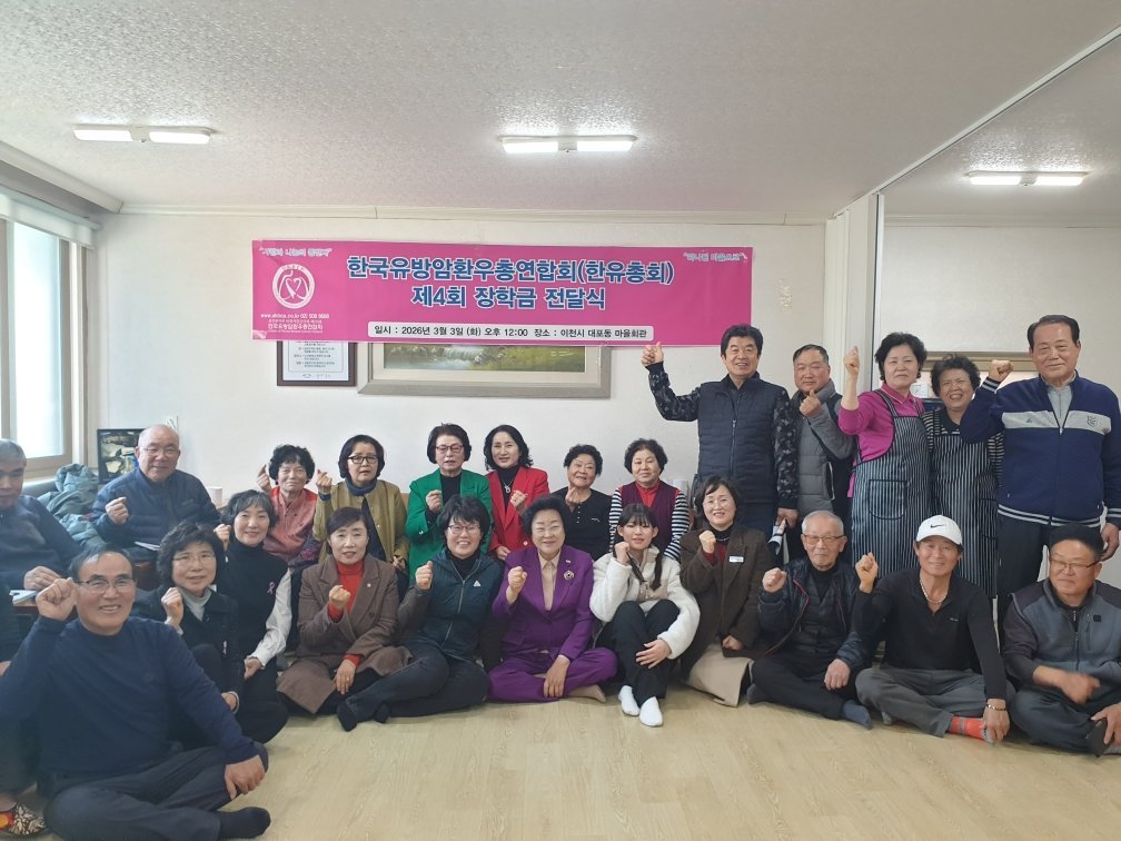 [금요저널] 한국유방암환우총연합회는 지난 3일 이천시 대포 1통 마을회관에서 지역 청소년의 꿈을 응원하기 위한 장학금을 전달했다.