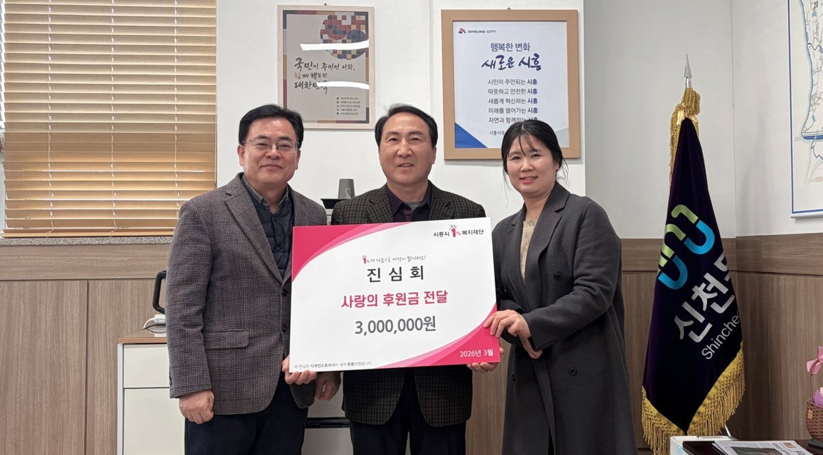 [금요저널] 시흥시 신천동 행정복지센터는 지난 3월 4일 진심회로부터 취약계층 학생 교육비 지원을 위한 후원금 300만원을 전달받았다.