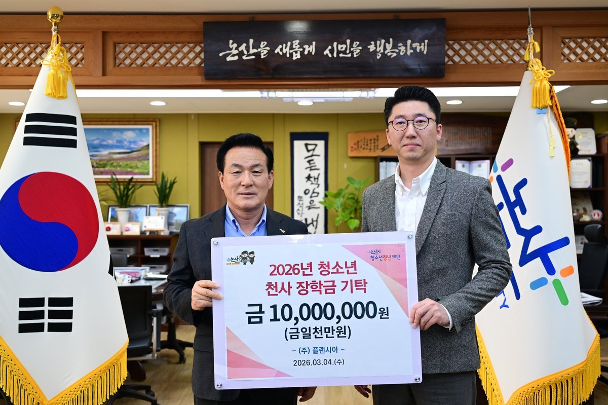 [금요저널] 논산시청소년청년재단은 지난 4일 ‘플랜시아’가 지역 청소년을 위한 천사 장학금 1천만원을 기탁했다고 전했다.