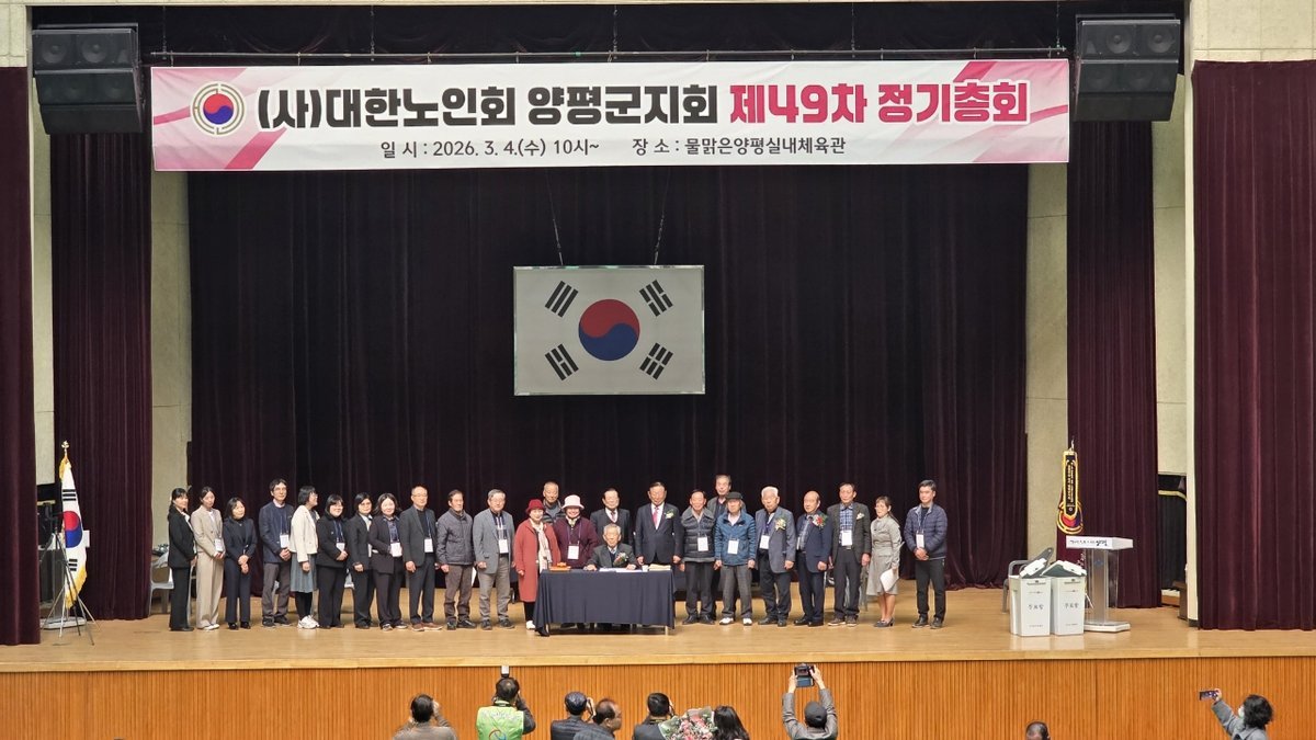[금요저널] 대한노인회 양평군지회는 지난 4일 오전 10시부터 오후 1시까지 물맑은양평체육관에서 지회장 및 대의원 350여명이 참석한 가운데 ‘2026년 제49차 정기총회 및 제17대 양평군지회장 선거’를 개최했다.