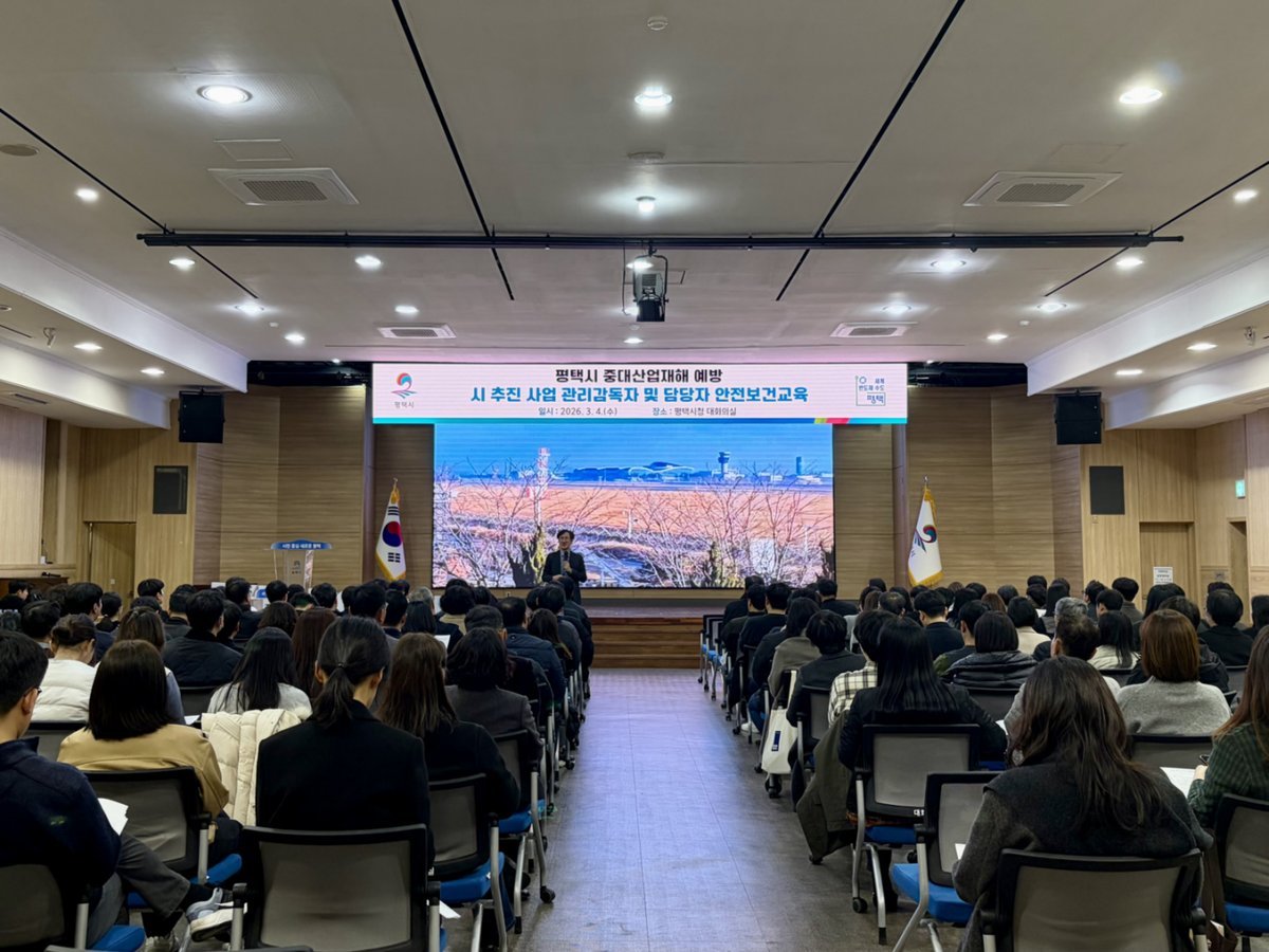 [금요저널] 평택시는 지난 4일 시청 대회의실에서 시 소속 사업장 및 도급사업의 안전관리 수준을 높이고 중대산업재해 예방을 위해 ‘중대산업재해 예방 역량 강화를 위한 안전‧보건 교육’을 실시했다.