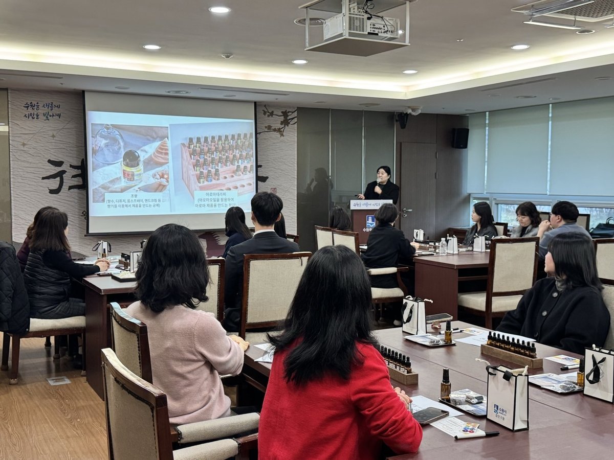 [금요저널] 수원시 장안구는 지난 5일 직원들에게 휴식과 힐링의 시간을 제공하기 위해 장안구청 상황실에서 아로마 테라피 클래스를 진행했다.