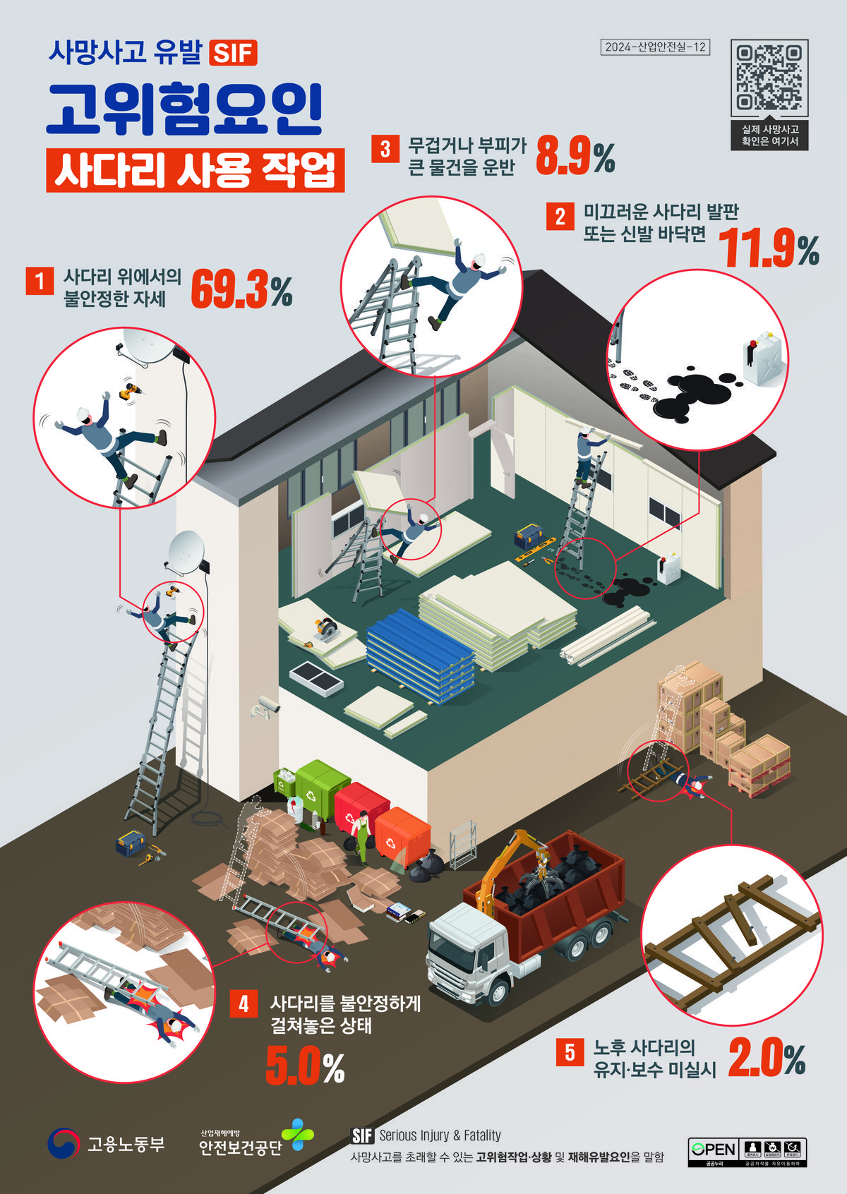 배부되는 포스터에 담긴 주요 안전수칙은 고소작업대 안전점검 내용 및 작성할 안전 서류 사다리의 미끄럼 넘어짐 방지조치 작업 전 보호장비 착용 등이다.