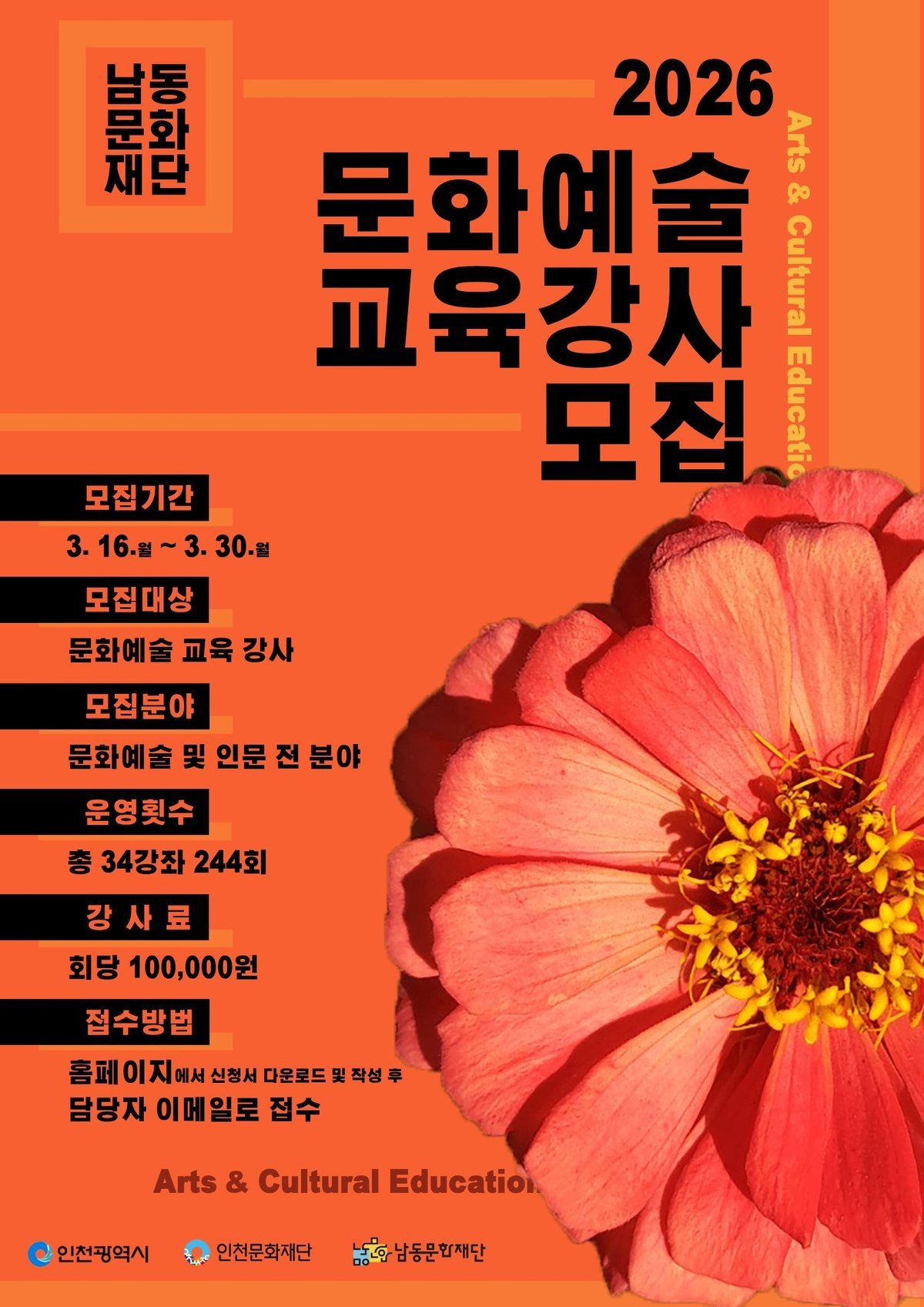 김재열 남동문화재단 대표이사는 “이번 문화예술 강사 공개 모집은 2026년 문화예술 교육 사업의 출발점으로 현장 경험과 전문성을 갖춘 문화예술 교육 강사들의 많은 지원을 바란다”고 말했다.