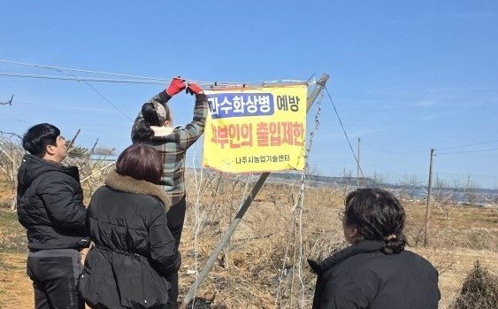 형남열 나주시농업기술센터 소장은 "과수화상병 사전 예방을 통해 안전한 영농 환경을 조성하고 시장 경쟁력을 더욱 강화하겠다"며 "농업인들께서는 '내 과원은 내가 지킨다'라는 책임 의식으로 작업 도구 소독과 외부인 출입 관리 등 예방 수칙을 철저히 준수해달라"고 당부했다.