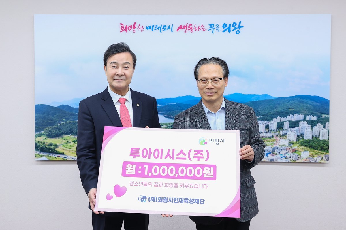 의왕시인재육성재단, ㈜투아이시스로부터 정기 후원금 기탁받아 (의왕시 제공)