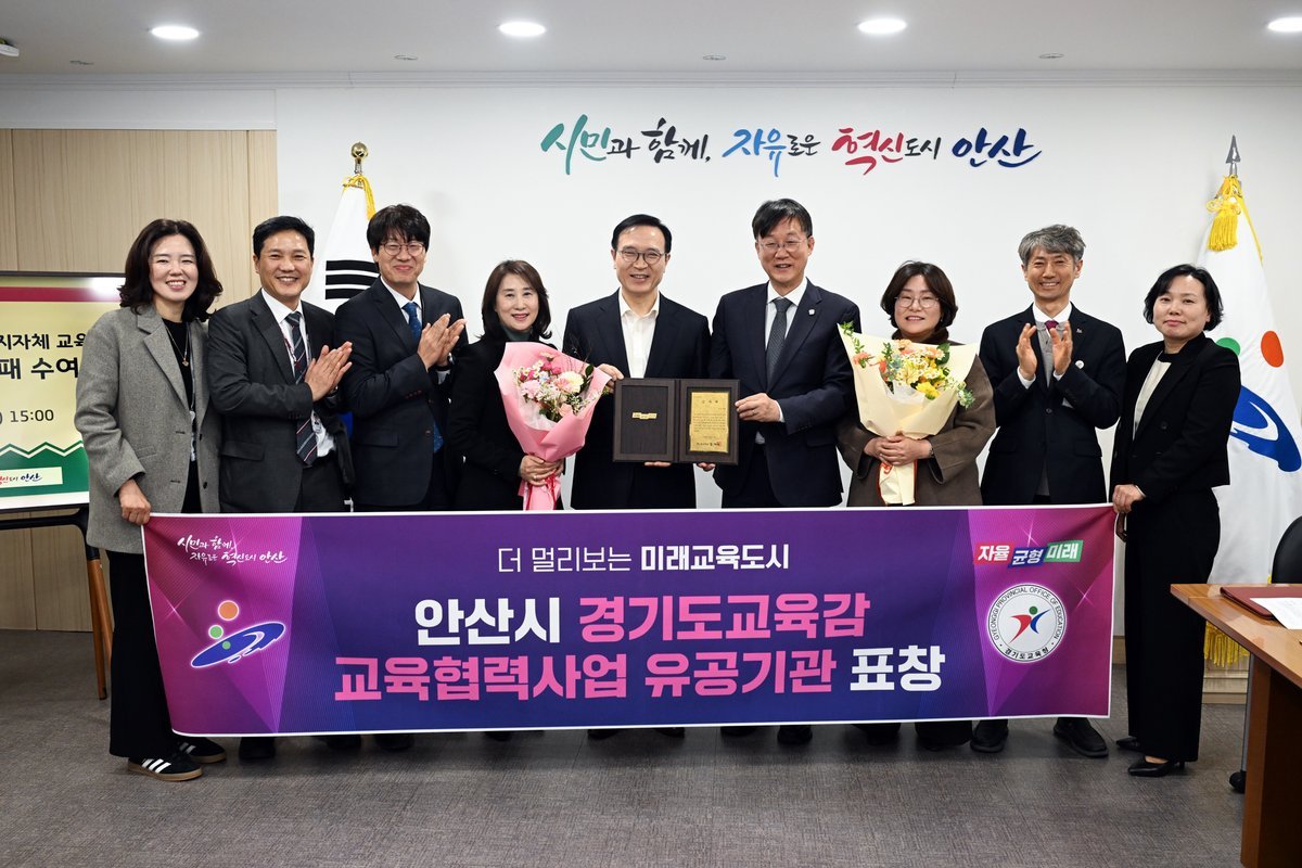 이민근 안산시장은 “이번 감사패는 교육청과 함께 안산의 미래인 학생들이 행복한 교육환경에서 성장할 수 있도록 노력해 온 결과”며 “앞으로도 교육여건 개선과 우수 교육 프로그램 지원을 확대해 교육이 곧 안산의 경쟁력이 될 수 있도록 행정적 지원을 아끼지 않겠다”고 말했다.