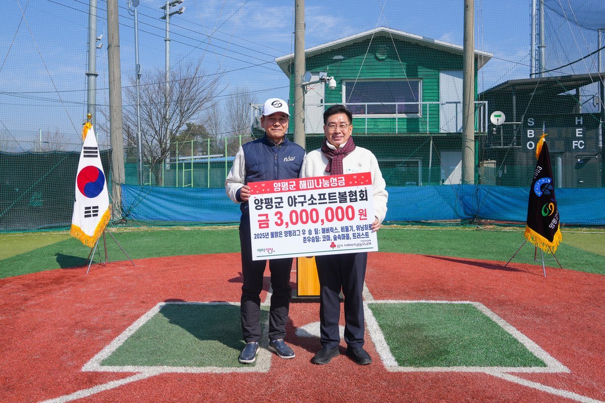 전진선 양평군수는 “지역 생활체육 활성화와 더불어 해피나눔성금 기탁을 통해 꾸준히 이웃사랑을 실천해 주신 양평군 야구소프트볼협회에 깊이 감사드린다”며 “전달된 성금은 도움이 필요한 취약계층을 위해 소중히 사용하겠다”고 말했다.