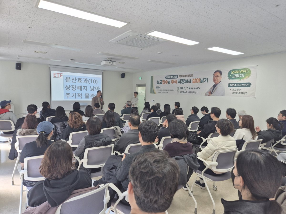 [금요저널] 의왕시 백운호수도서관이 3월 7일 독서문화강연 최고민수의 주식 시장에서 살아남기 를 시민들의 높은 관심 속에 마무리했다.