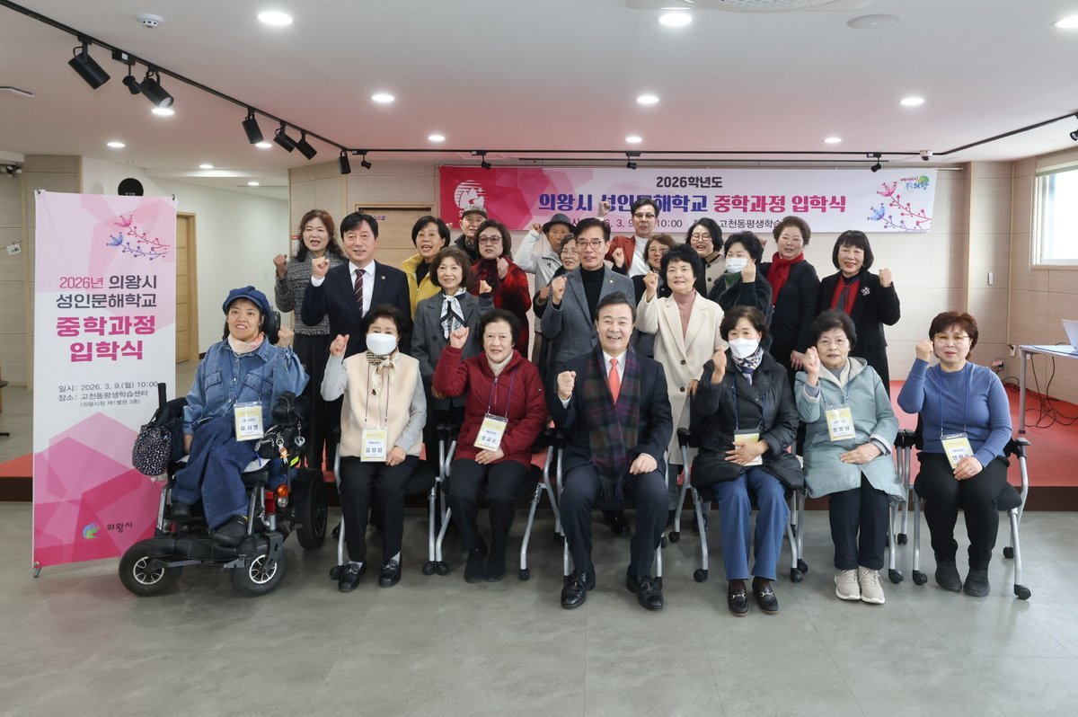 [금요저널] 의왕시가 3월 9일 고천동 평생학습센터에서 ‘2026학년도 의왕시 성인문해교육 중학과정 입학식’을 개최했다.