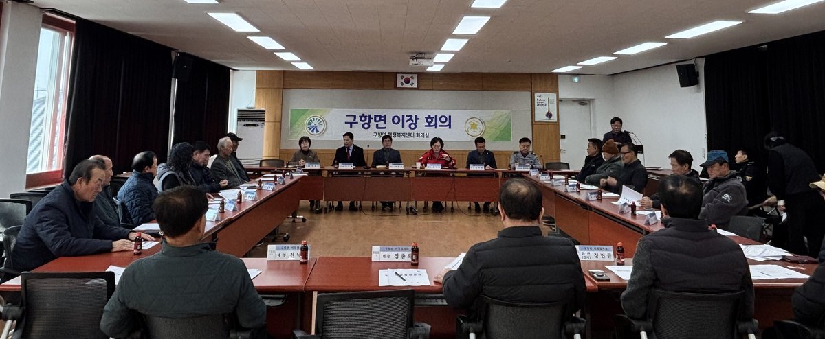 이장회의의 주요 내용으로 2026년 새봄맞이 대청소 2026년 구항면 지역사회보장협의체 사업 기본형 공익직접지불금 등록신청 봄철 산불조심기간 소각행위 절대 금지 농어민수당 지원사업 신청 등 주민 생활과 밀접한 사항에 대해 안내하고 협조를 당부했다.