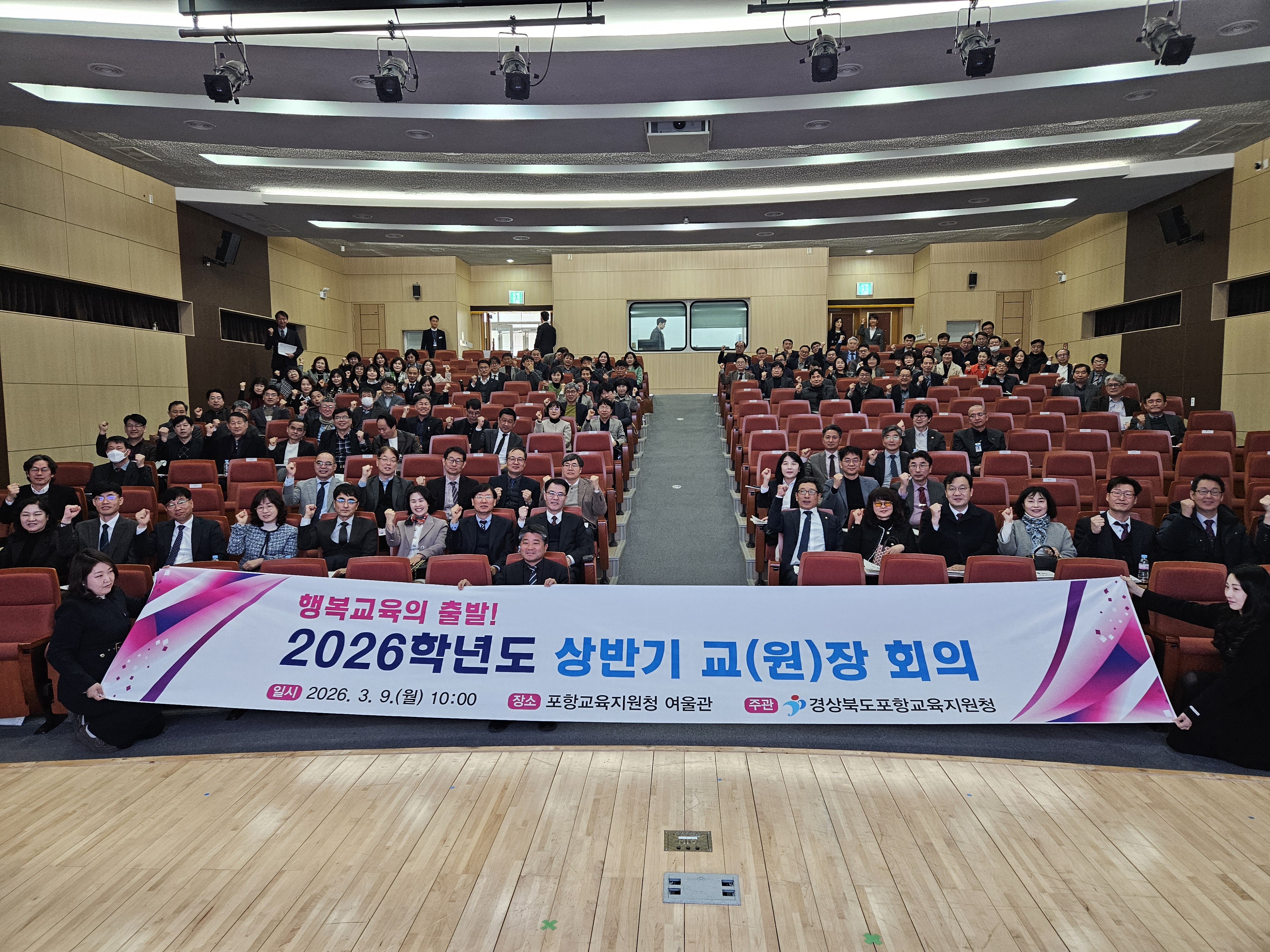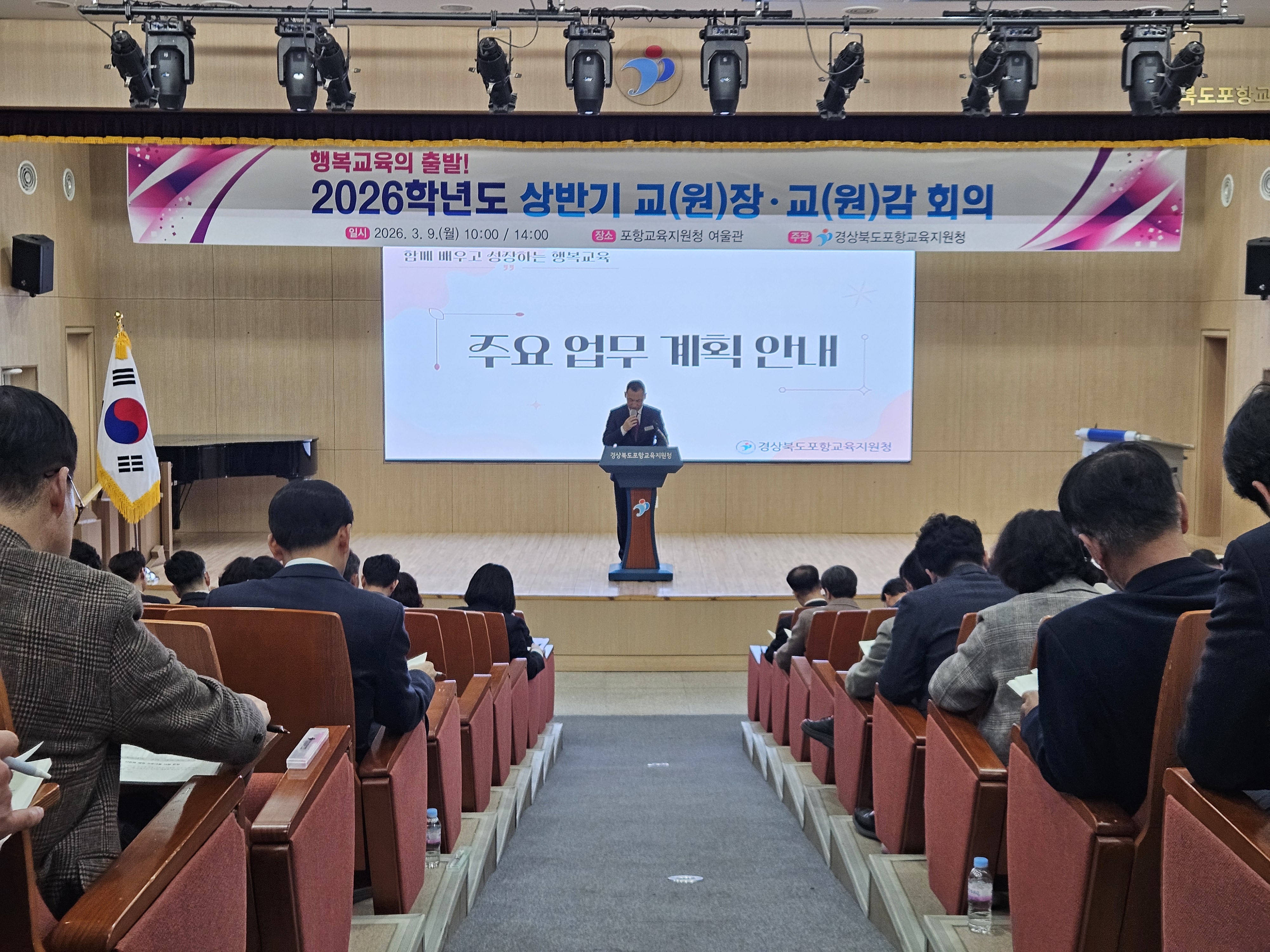 포항교육지원청(교육장 최한용)은 2026. 3. 10.(화) 13:30에 여울관에서 주요 추진 업무를 공유하고 학교 현장에서의 경북형 웍스 AI 활용 방법을 안내하기 위한‘2026년 상반기 행정실장 회의’를 개최하였다.