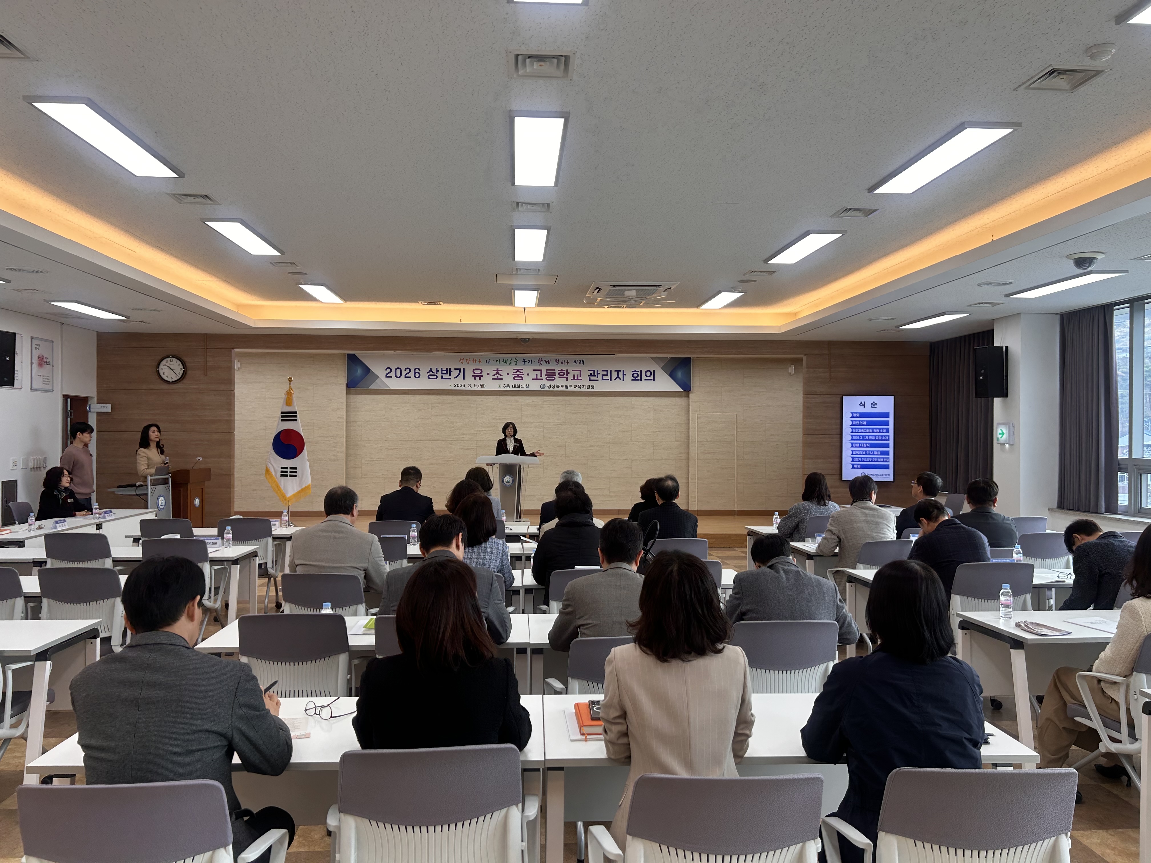□ 청도교육지원청(교육장 오홍현)은 지난 9일(월), 청도교육지원청 대회의실에서 관내 유·초·중·고등학교 교(원)장을 대상으로, 삶의 힘을 키우는 따뜻한 청도교육 실현을 위한 2026학년도 상반기 관리자 회의를 개최하였다.