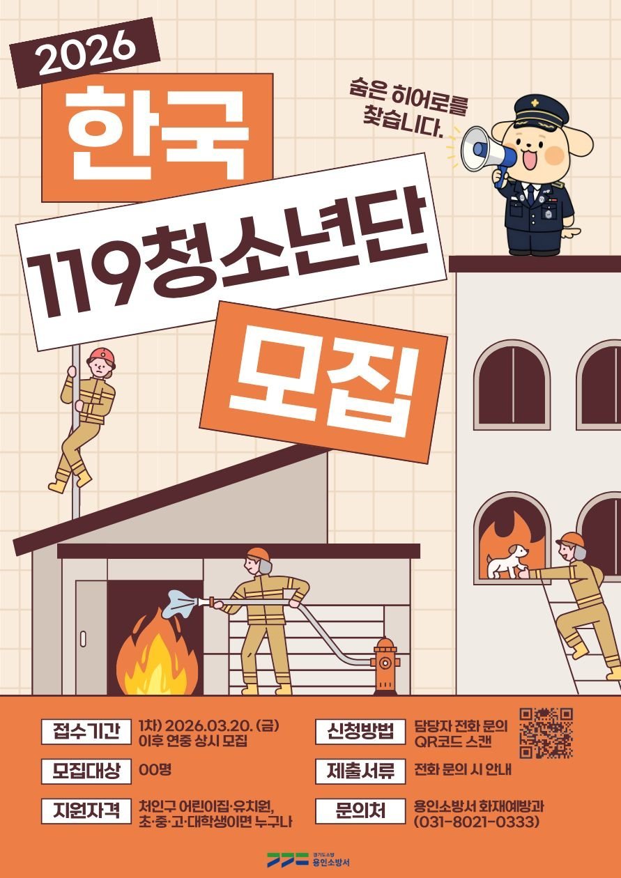 [금요저널] 용인소방서는 미래 안전문화를 이끌어갈 2026년 한국119청소년단 신규 단원 모집을 실시한다고 밝혔다.