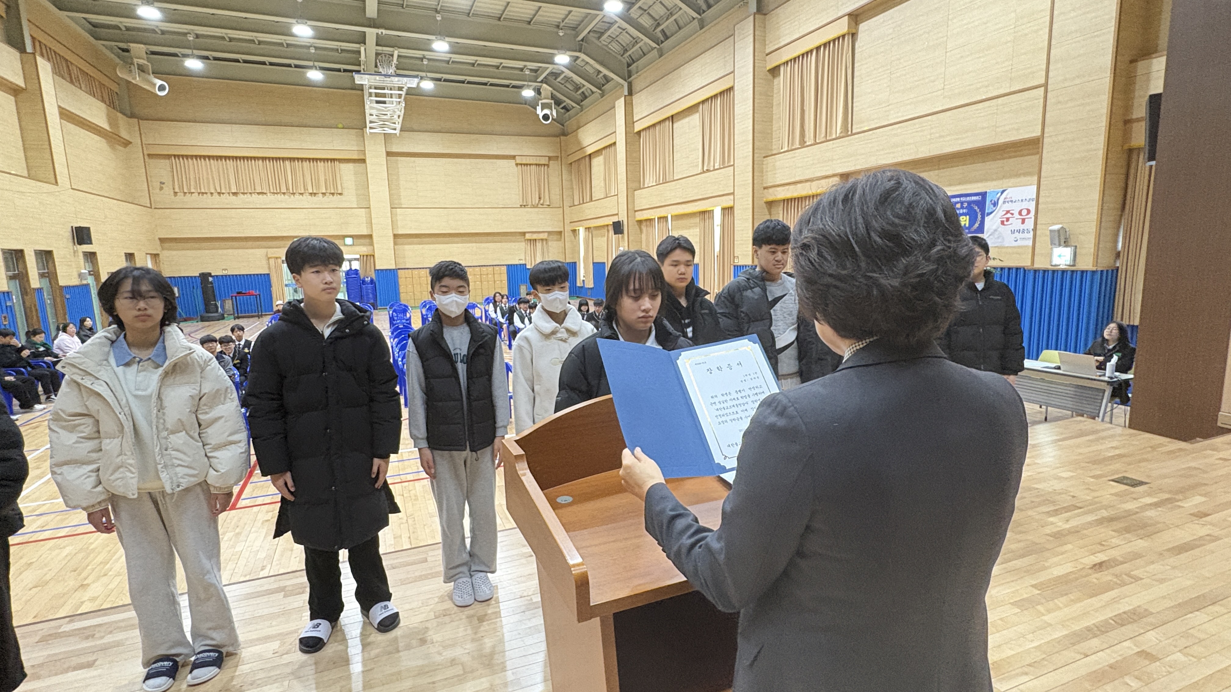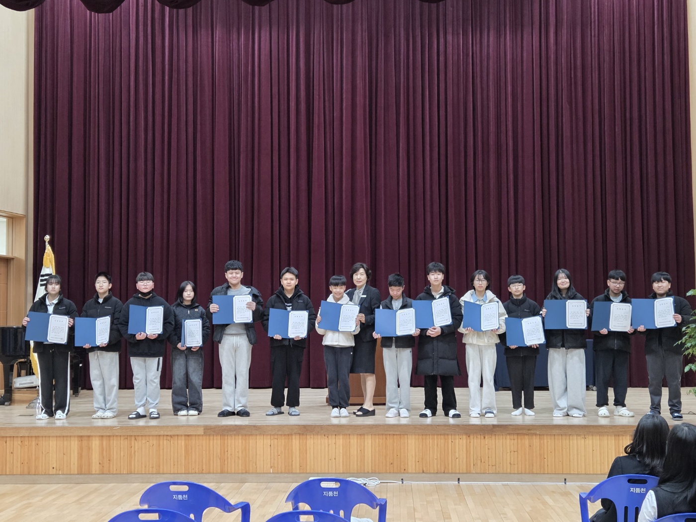 □ 지품천중학교(교장 이명자)는 대한불교 조계종 청암사(주지 상덕스님)으로부터 학생 장학금 지원을 받아 2026학년도 입학생 14명 전원에게 장학금을 수여하였다. 이번 장학금은 학업에 성실히 임하고 새로운 학교 생활을 시작하는 학생들에게 격려와 응원의 의미로 전달되었다.