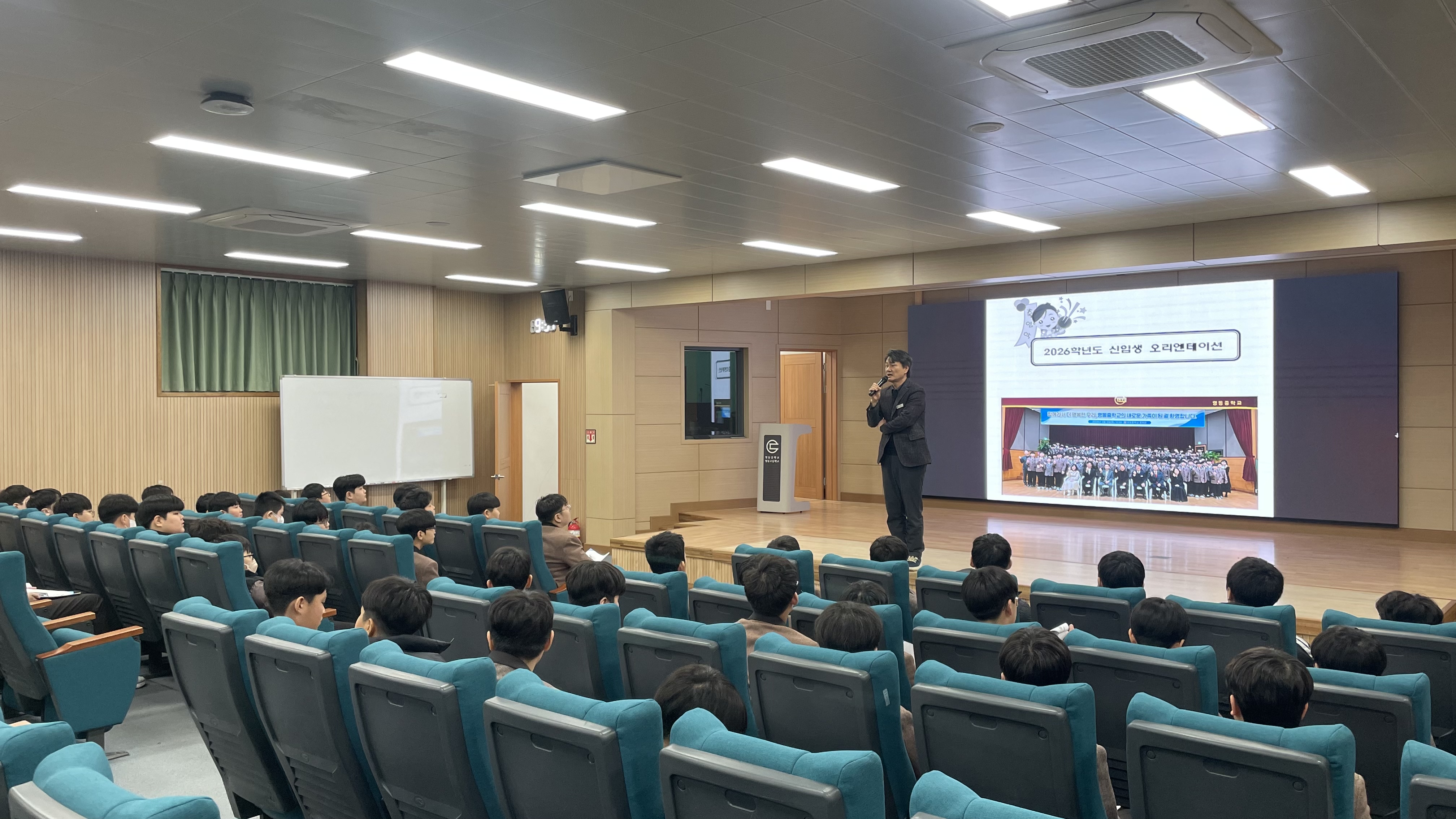 □ 영동중학교(교장 안명환)는 2026. 3. 6.(금)에 본교 시청각실(상록관)에서 2026학년도 신입생 105명을 대상으로 학교생활 전반에 대한 오리엔테이션을 실시하였다.