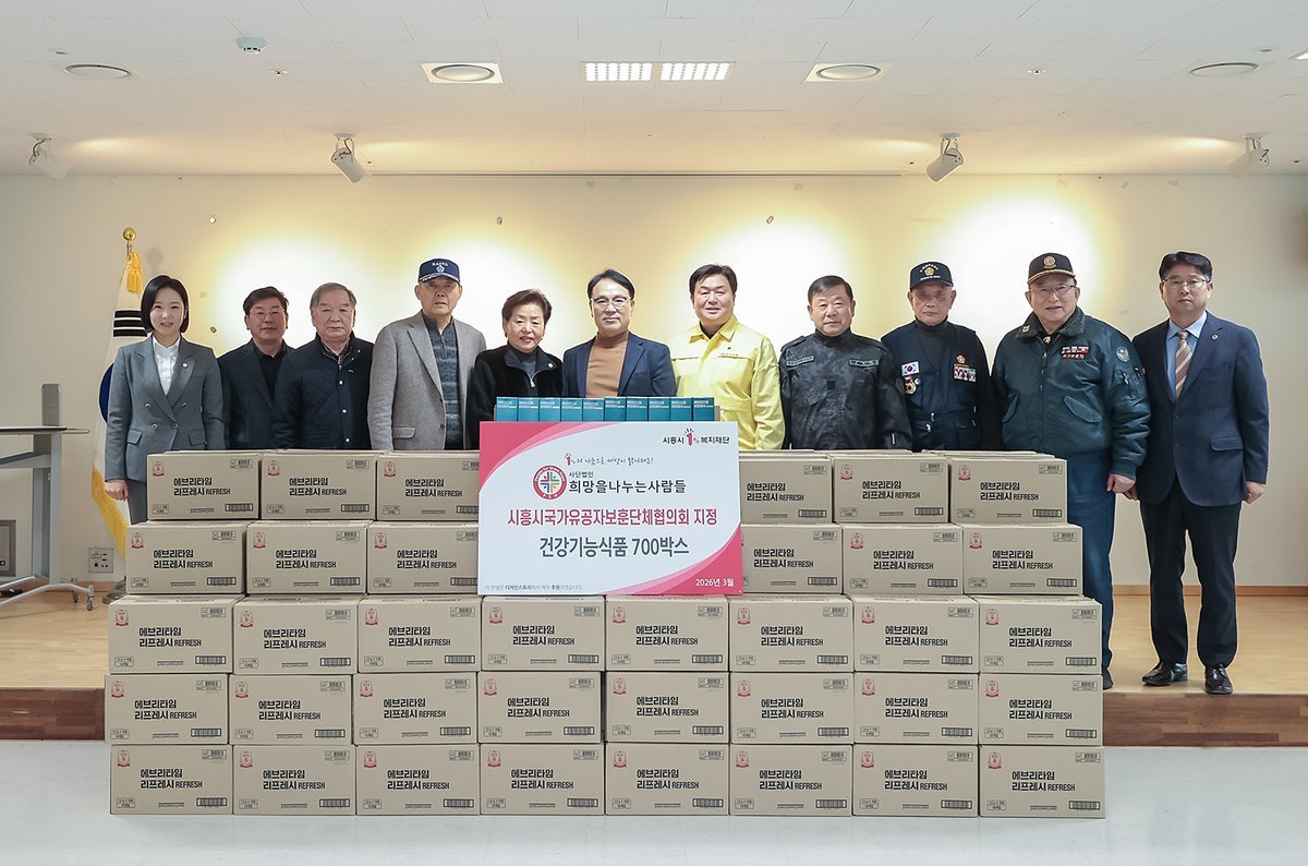 [금요저널] 시흥시는 지난 3월 11일 ‘희망을 나누는 사람들’이 시흥시1%복지재단을 통해 시흥시 보훈단체 협의회에 건강식품 700여 개 및 즉석밥 7000여 개를 전달했다고 밝혔다.